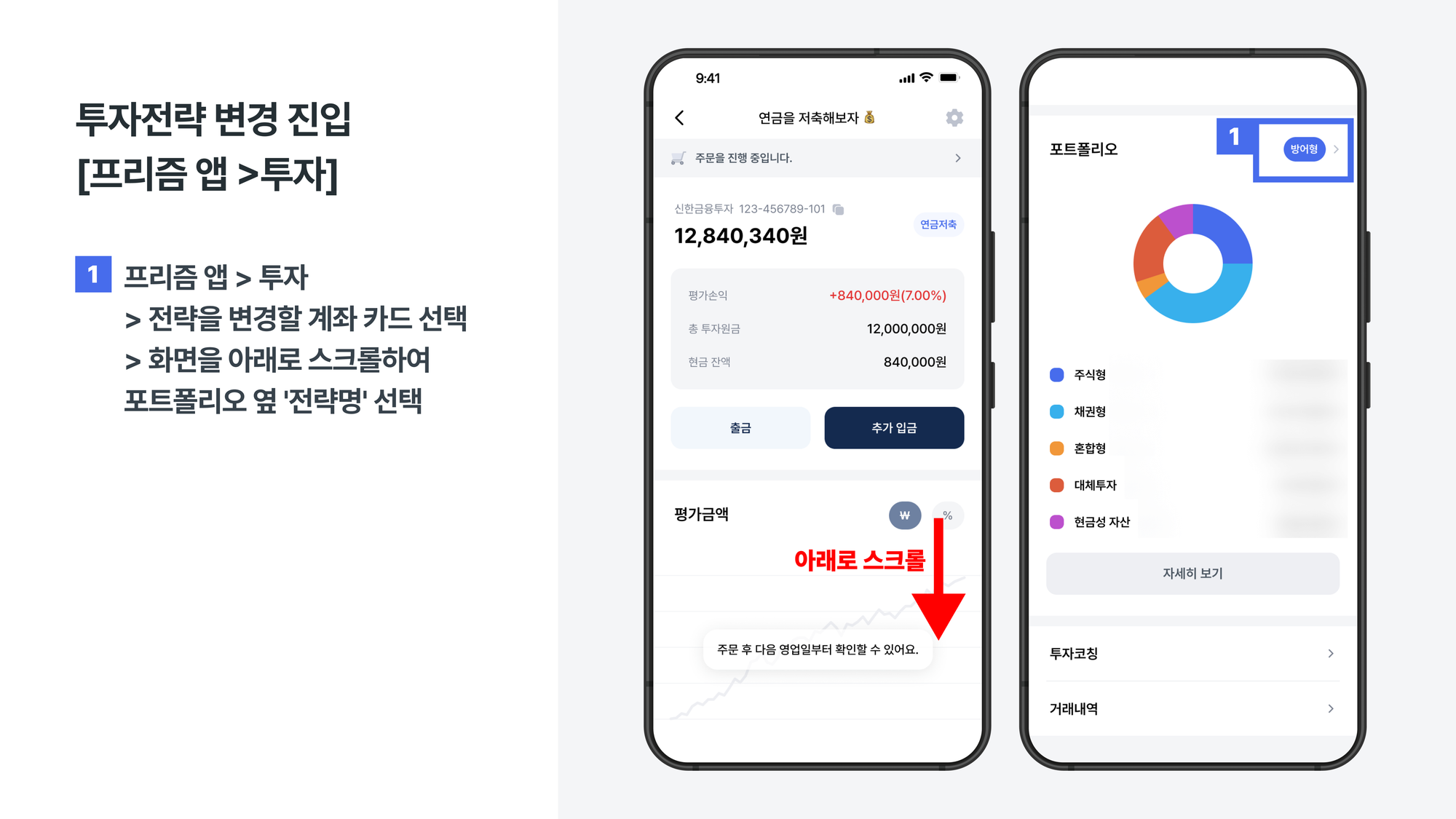 - 기존 전략에서 파워형으로 전략 변경 시, 최소 투자금 2,000만원이 안되는 경우에는 전략 변경 과정 중 추가 입금을 진행하실 수 있습니다.