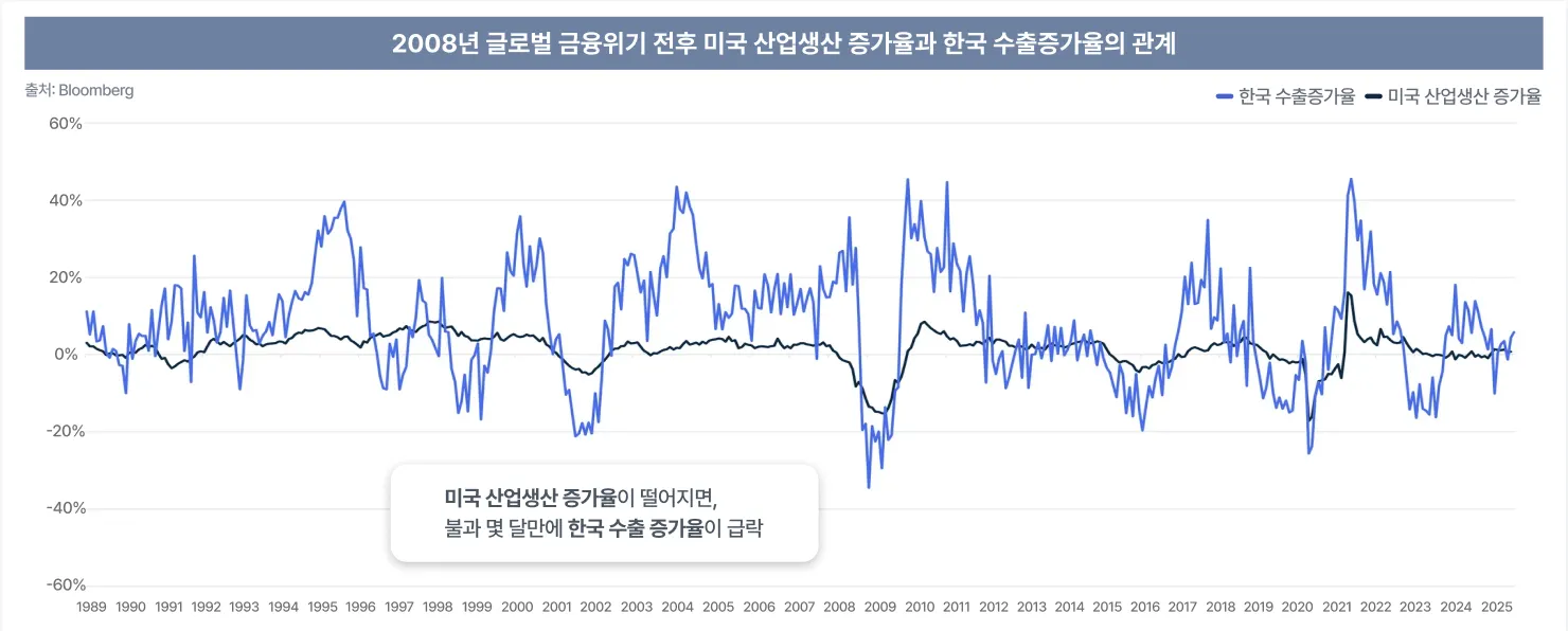 한국 경제는 수출 의존도가 매우 높습니다. 이는 선진국의 소비가 조금만 흔들려도 한국의 수출 기업과 주가는 훨씬 더 크게 요동치는 채찍 효과(Bullwhip Effect)를 만들어냅니다. 🎢