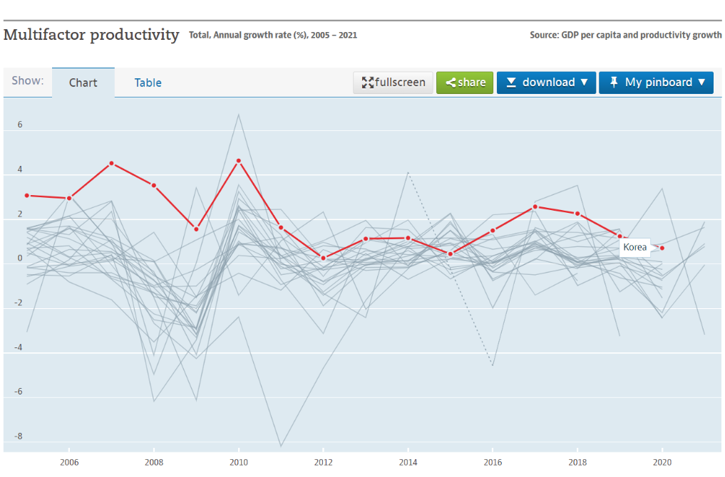 따라서 총요소생산성이 향상되어야 진정한 의미의 혁신 국가라고 볼 수 있겠습니다.