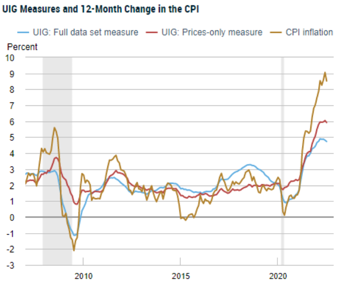 The UIG provides a measure capturing sustained movements in inflation from a broad set of data