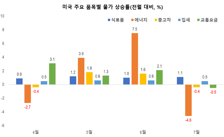 인플레 압력 약화를 예상한 두 번째 이유는 에너지가격의 하락이 6월 하순부터 본격화되었기 때문입니다. 국제유가가 하락하면 약 2~3주 시차를 두고 휘발유 경유 등 주요 제품가격이 인하되는 것이 일반적이죠. 따라서 현재 기조가 이어진다면, 하반기에는 인플레에 대한 공포가 크게 완화되지 않을까 생각해 봅니다.