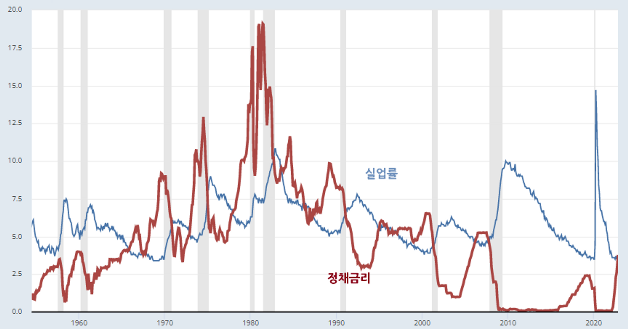 <그림 4> 미국 정책 금리와 실업률의 관계