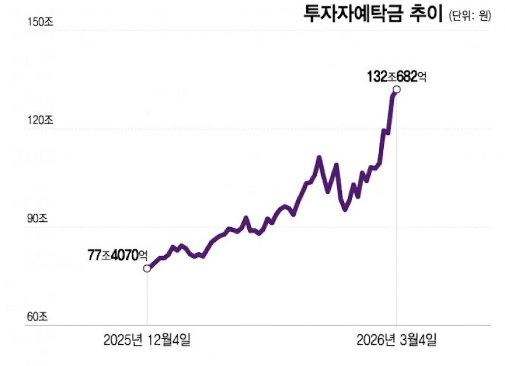 2025년 12월 4일 대비 무려 약 54조 원이 단기간에 급증하였습니다. 예탁금이 늘었다는 건 주식을 사기 위해 새로 계좌를 개설하고 돈을 입금한 '주린이' 투자자가 그만큼 많아졌다는 증거예요. 시장에 새로운 에너지가 공급되는 것은 좋지만, 준비되지 않은 유입은 큰 변동성에 노출될 위험이 큽니다.
