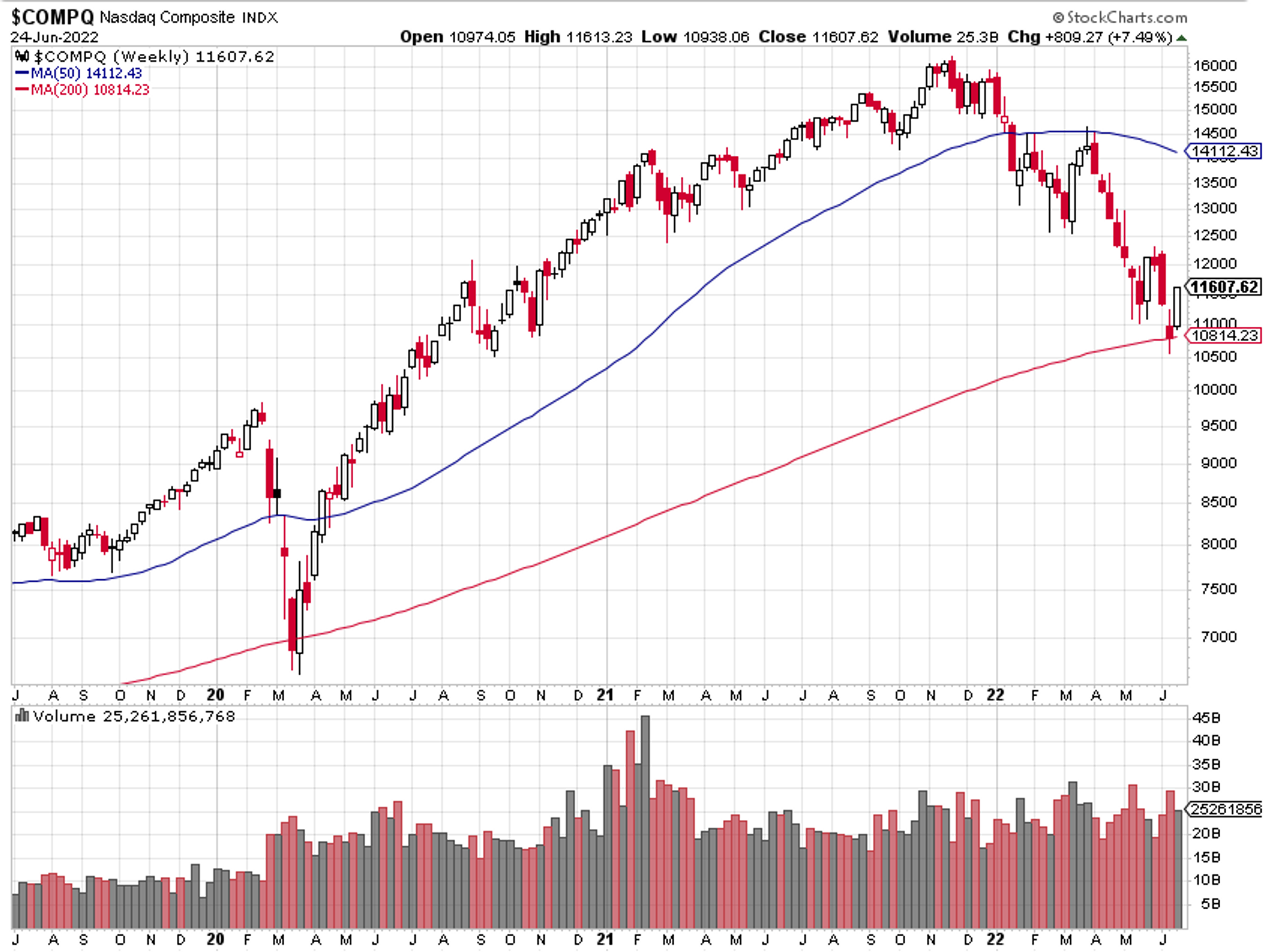 최근 글로벌 주식시장이 패닉에서 조금씩 벗어나고 있는 것 같습니다. <그림 1>에 나타난 것처럼, 나스닥 종합지수는 200주 이동평균(Moving Average, MA)선의 지지를 받고 강한 반등에 성공했습니다. 미국 증시가 반등한 이유는 어디에 있으며, 또 지금의 반등이 지속될 수 있을 지 살펴보겠습니다.
