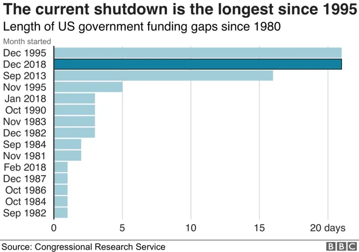 미국 연방정부 예산은 매 회계연도 시작일인 10월 1일 이전에 의회가 새로운 예산안 또는 한시적 지출 연장안(continuing resolution, CR)을 통과시켜야 한다. 만약 의회가 예산을 승인하지 못하면, 정부 자금 조달이 끊기면서 일부 연방기관들은 정상 운영이 불가능해진다.
