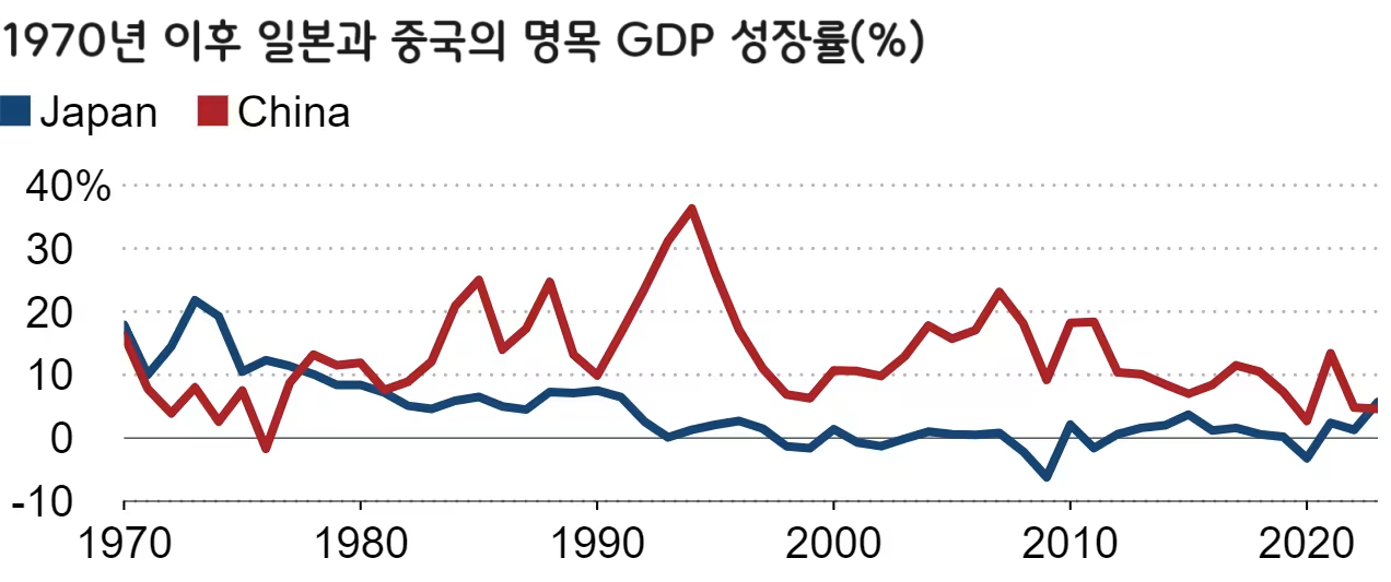 일본 내각부가 발표한 2023년 국내총생산(GDP) 잠정 수치에 따르면 일본의 명목 성장률은 1977년 이후 처음으로 중국을 추월했습니다. 일본 경제는 5.7%의 명목 성장률을 보인 반면 중국은 4.6% 성장했습니다.