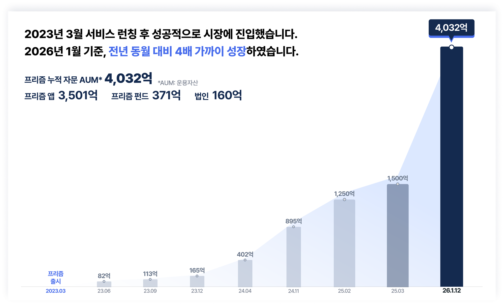 프리즘 누적 자문 AUM* 4,032억 (*AUM: 운용자산)