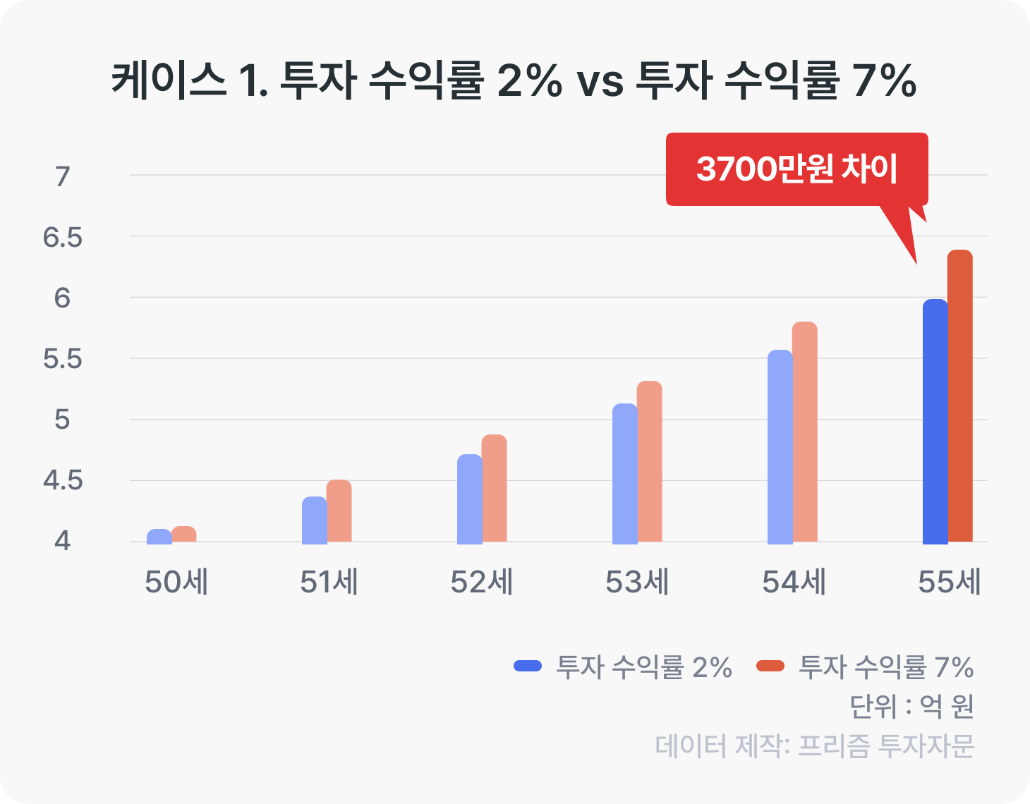 은퇴 시 얼마나 자금의 차이를 가져오는 지 확인해보고자 합니다.