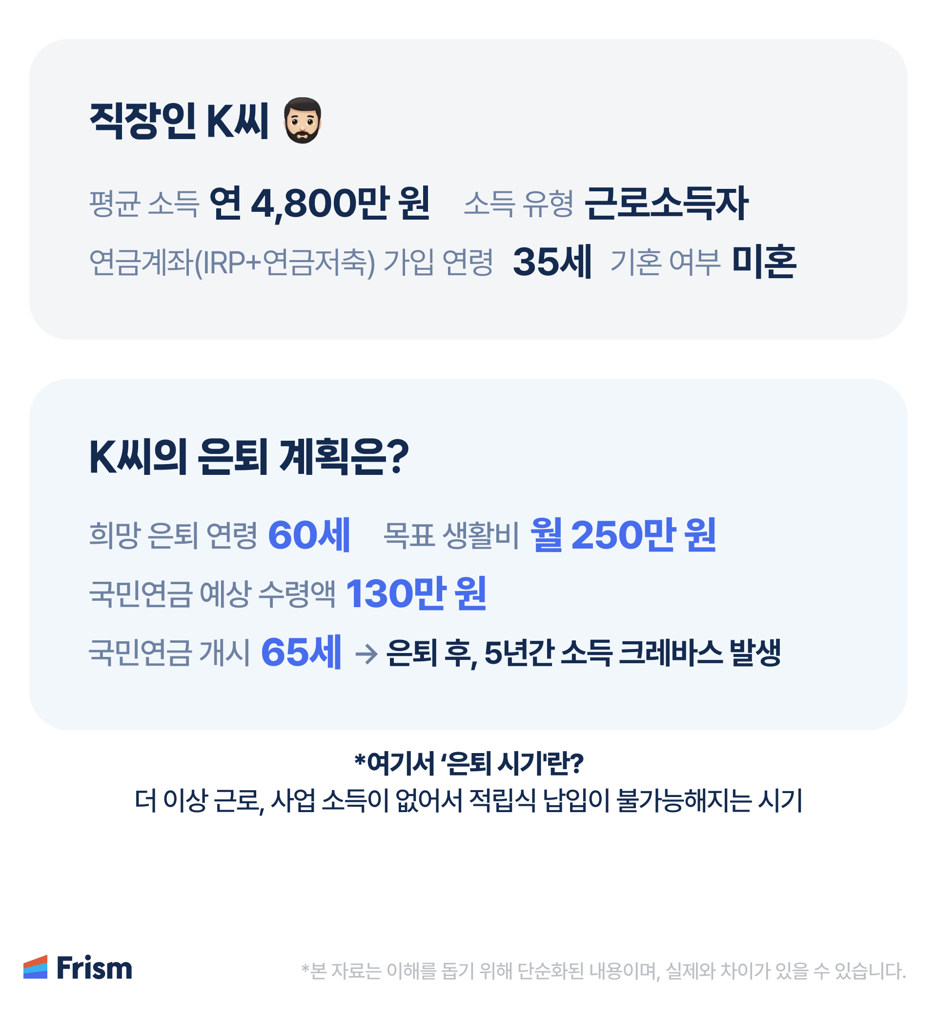 K씨는 은퇴 직후 총 5년의 소득 크레바스를 맞게 됩니다.