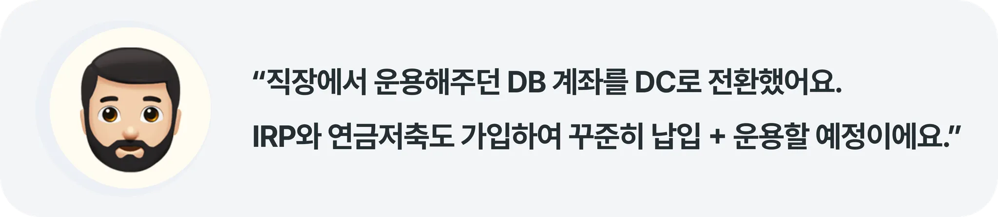 - 지금껏 회사에서 DB형으로 관리하던 퇴직금을 DC형으로 전환했어요. 연금 계좌처럼 K씨 스스로 운용할 수 있게 되었어요.