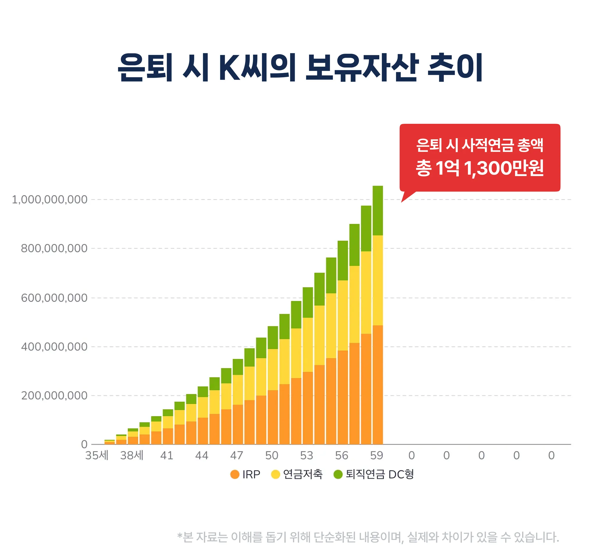 결국 K씨는 은퇴 시점에 약 11억원의 자산을 보유하게 되었어요.