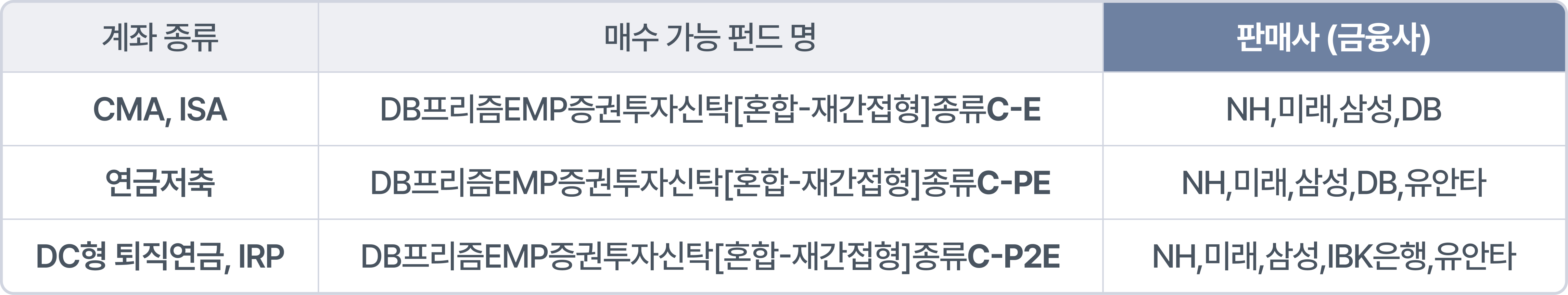 프리즘 펀드는 판매사 계좌를 통해 이 두 고객군 모두가 투자할 수 있습니다.