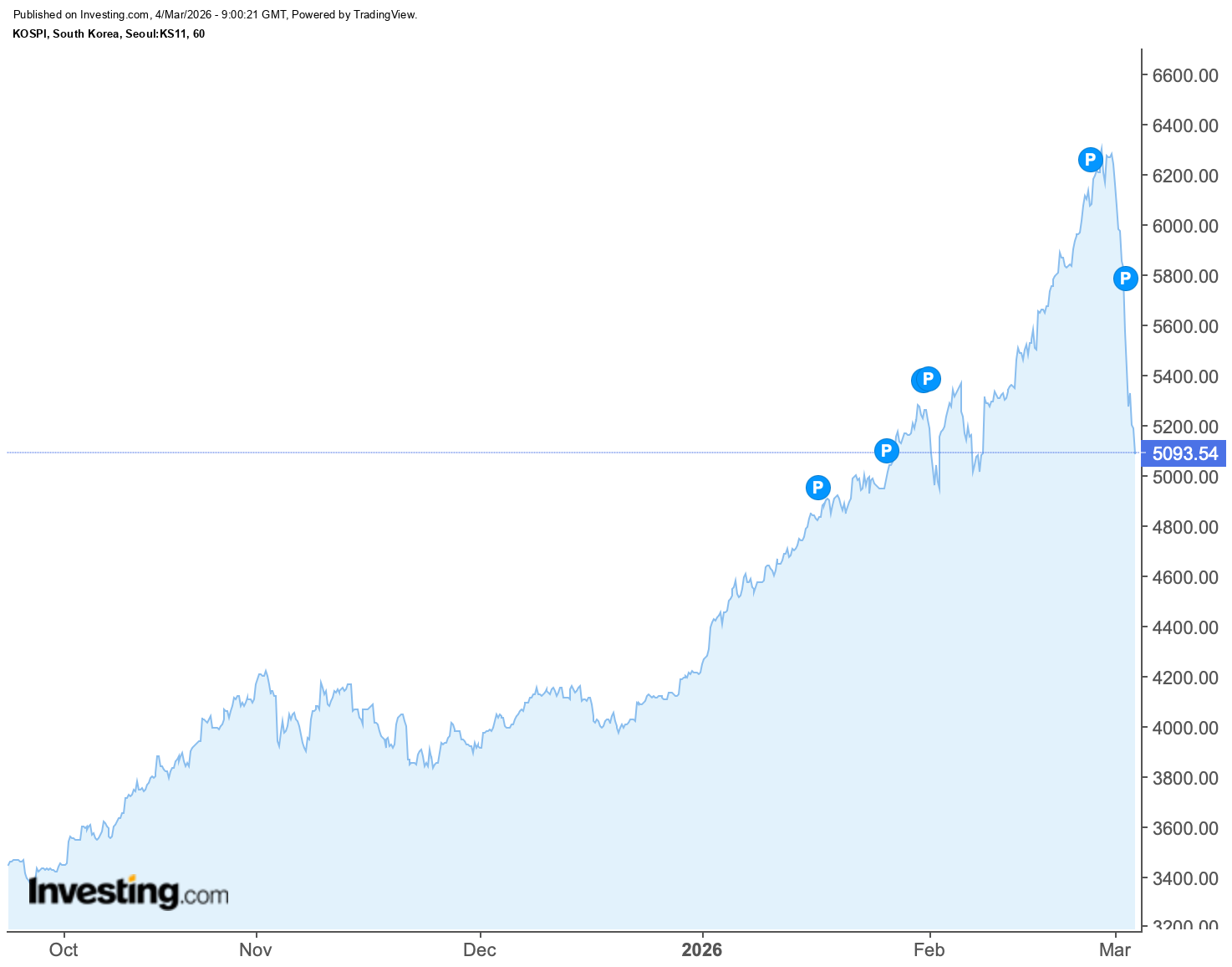 연초부터 2월 말까지 코스피가 48.17% 급등하며 세계 주요 지수 중 압도적 1위를 기록했던 한국 증시는