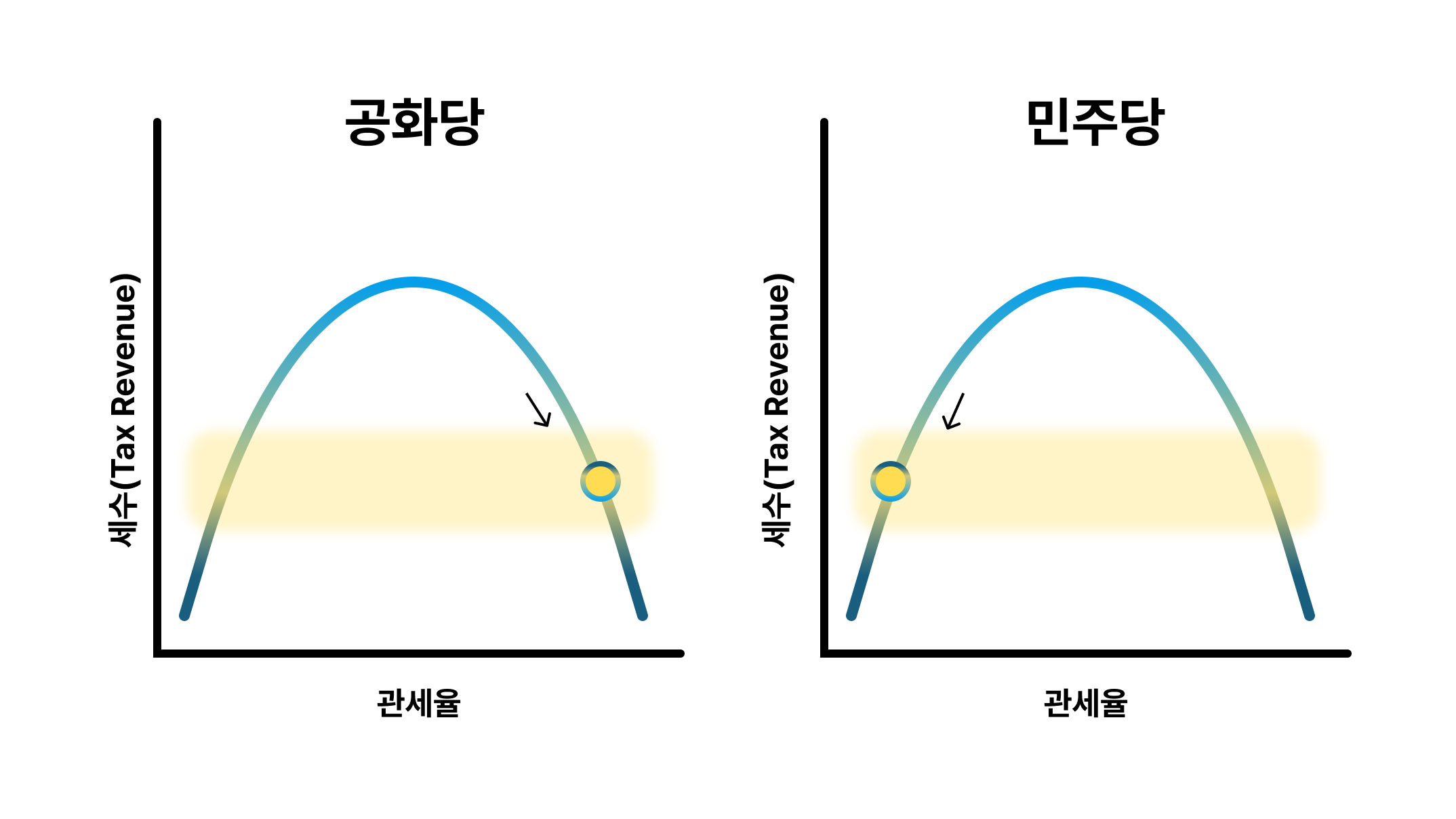 - 민주당: 관세를 줄여 정부 수입을 축소하자.