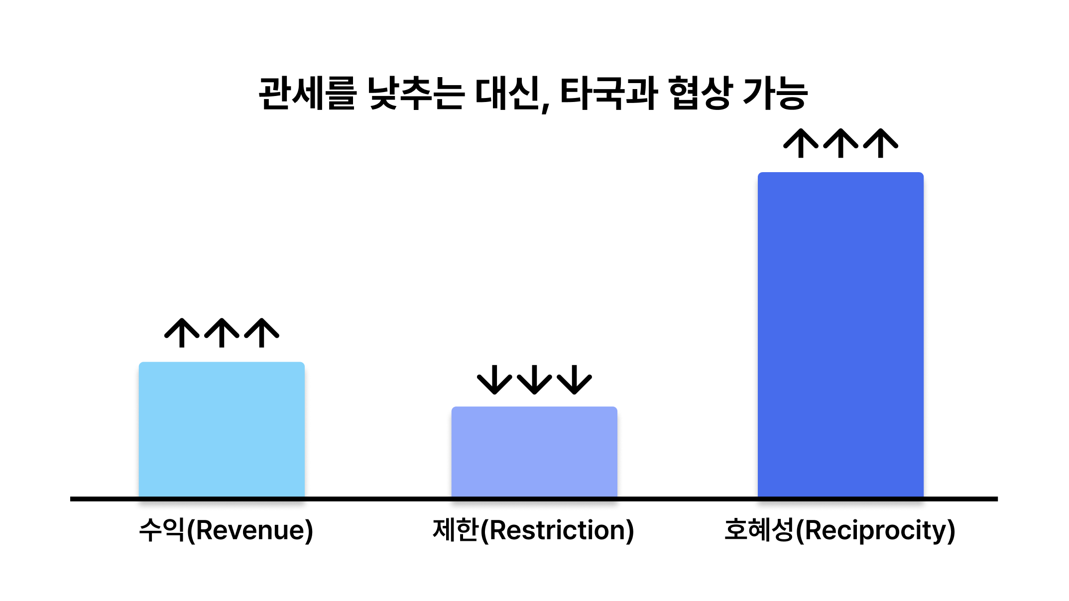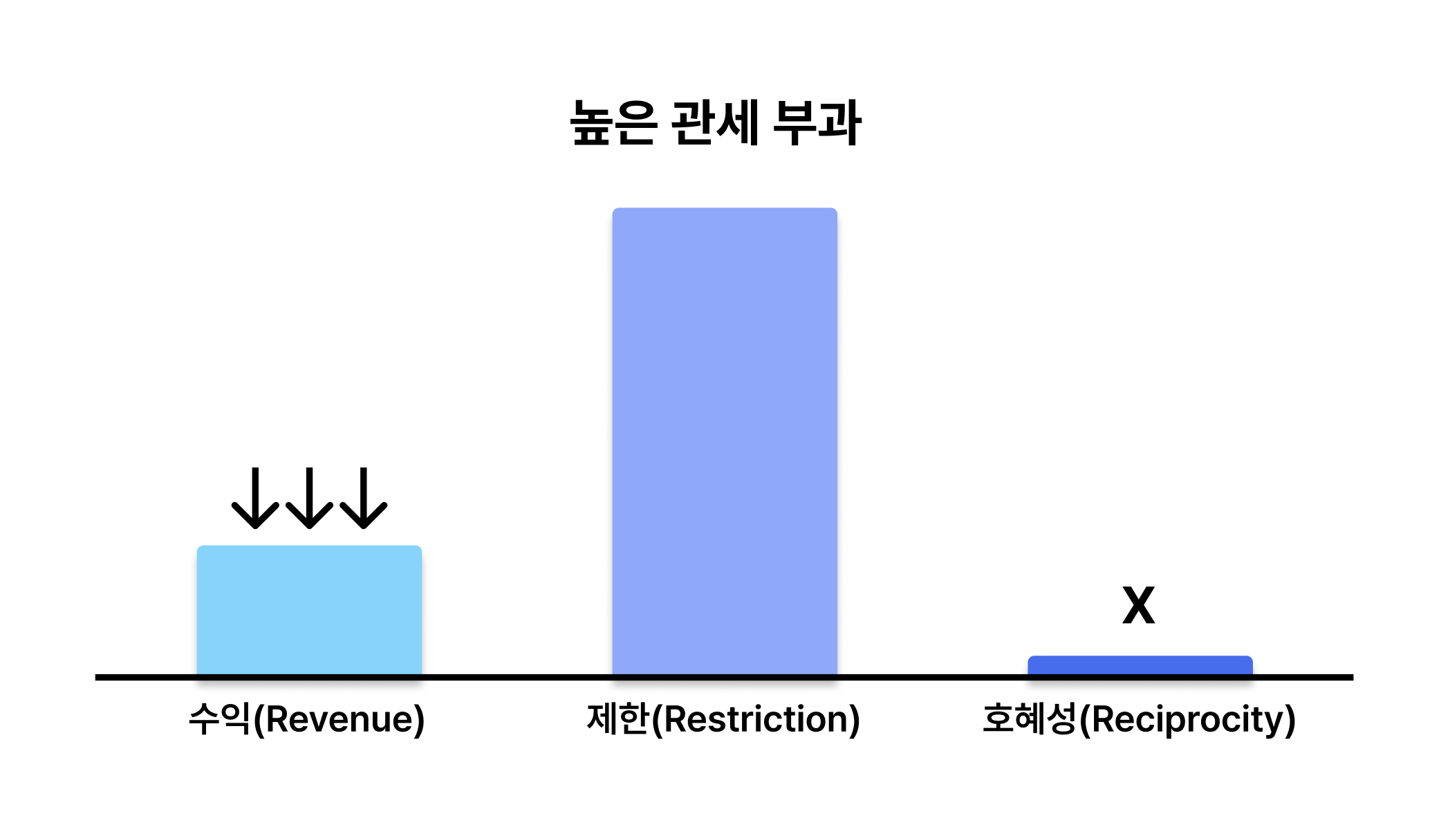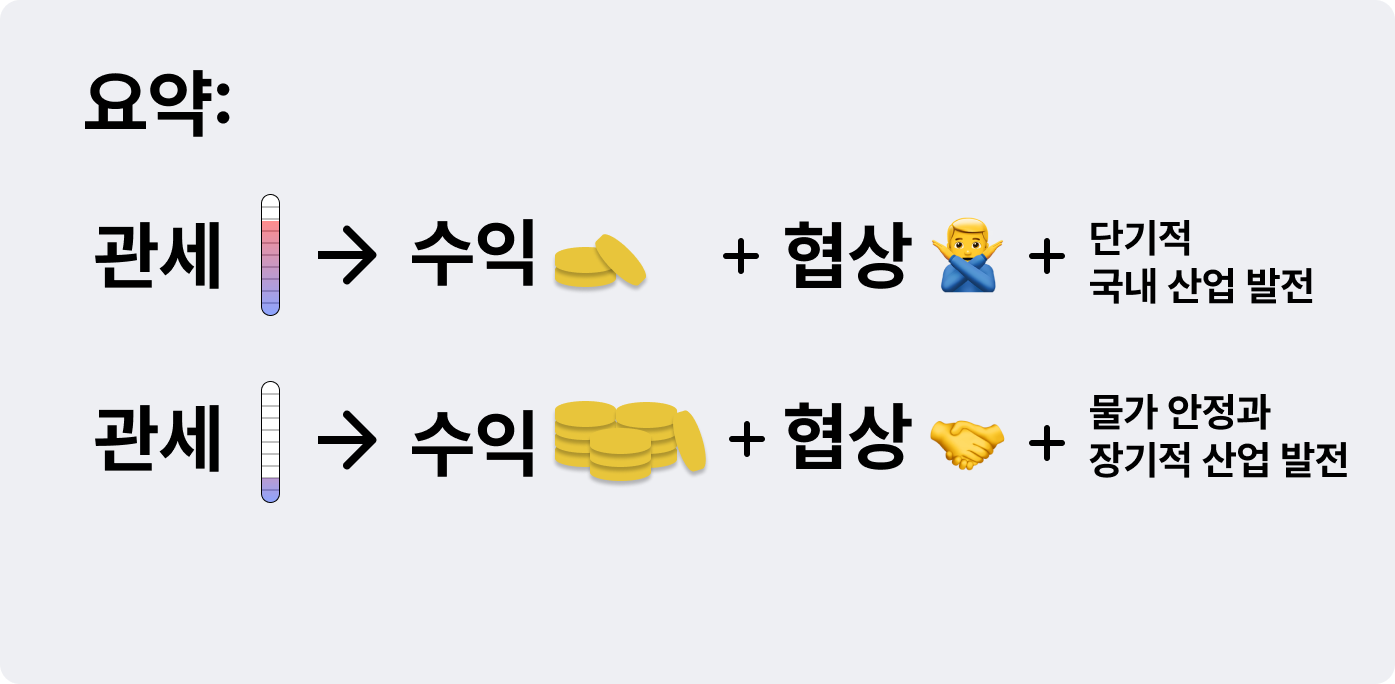 1. 관세를 높이면(제한 강화), 수익과 호혜가 동시에 어려워짐