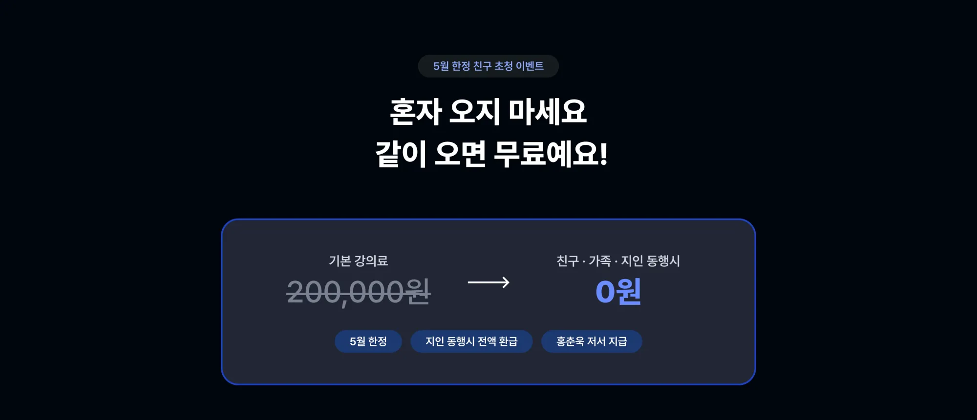 5월 한정으로 친구, 가족, 지인과 동반시 전액 무료 혜택 제공 중이니,
