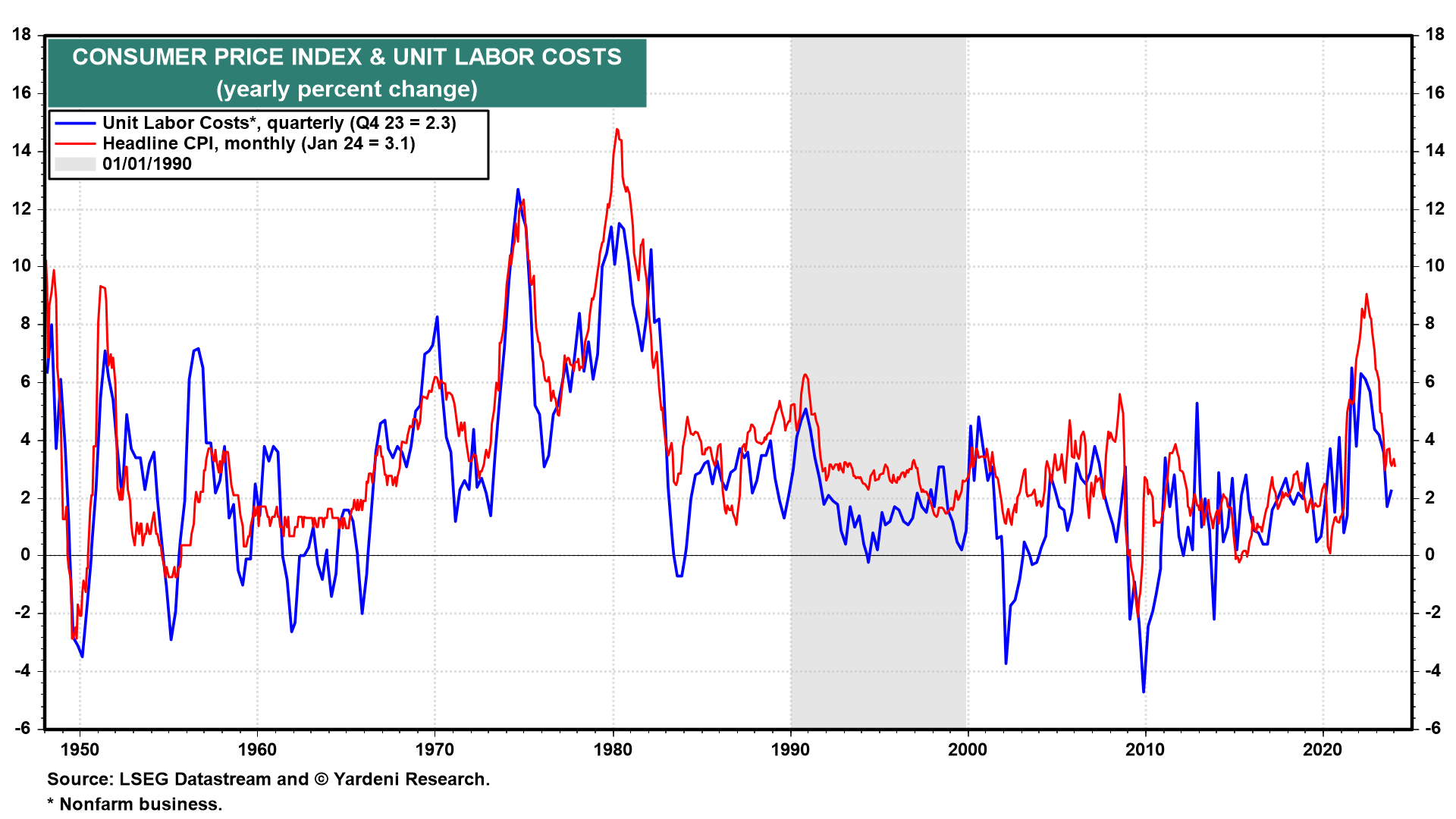 <그림> 미국 단위노동비용(파란선) vs. 소비자물가 상승률(붉은선)