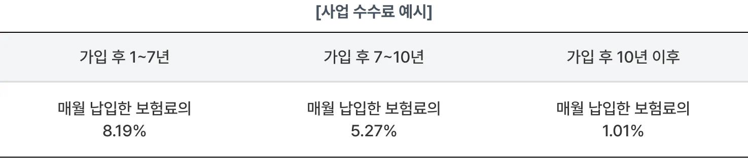 - 가입 초기에는 납입 보험료의 약 7~8% 수준이 사업비로 차감