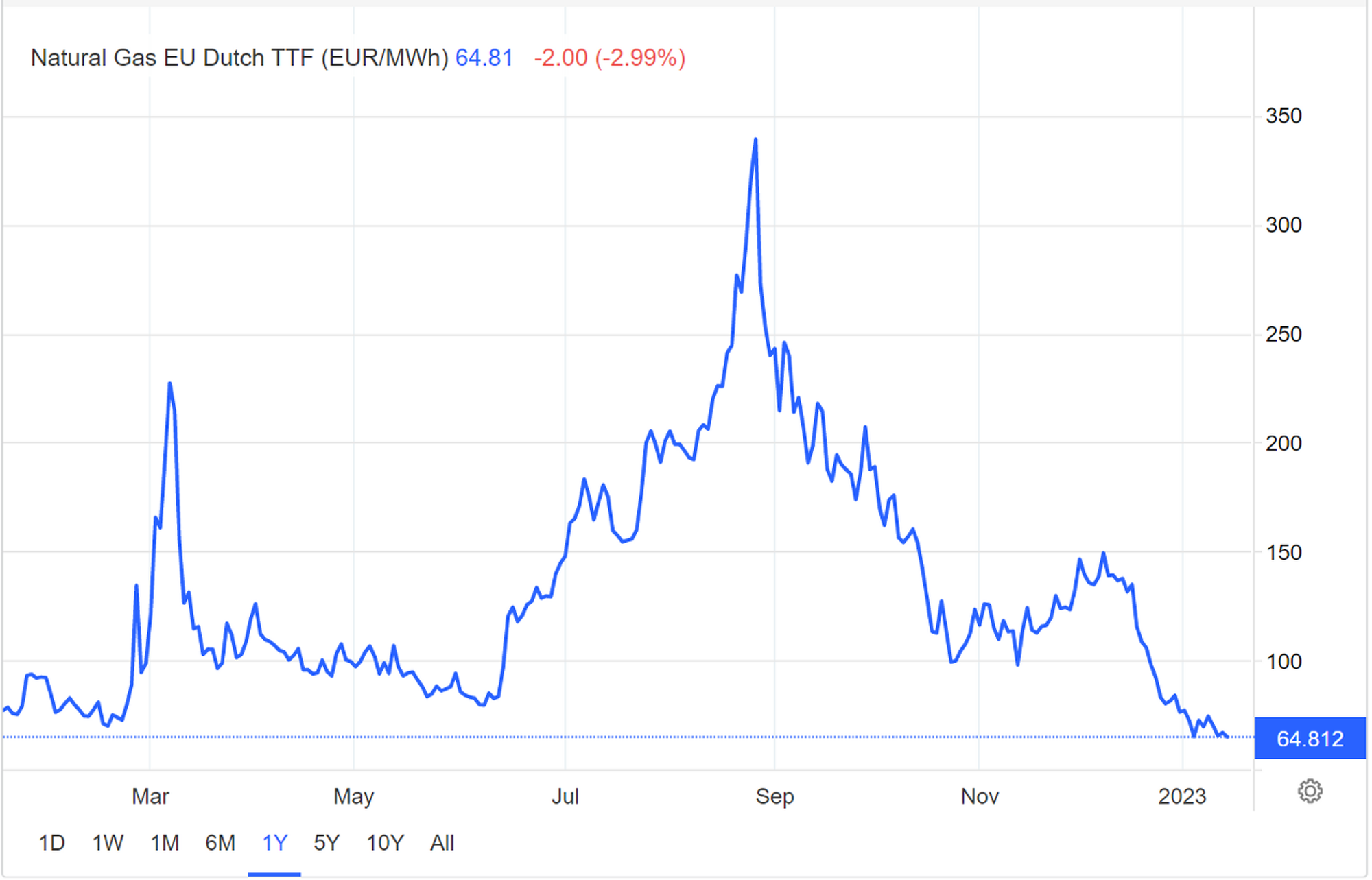 특히 우크라이나 전쟁 이후 러시아가 천연가스와 원유를 ‘무기화’ 했던 것을 감안할 때, 천연가스 가격의 급락은 소비 심리 개선 효과도 발휘하고 있습니다.